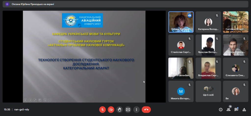 27 жовтня 2022 р. у режимі онлайн на платформі Meet викладачами кафедри історії та документознавства ФЛСК НАУ було проведено засідання наукового гуртка «Академічні вимоги до написання курсових проєктів та кваліфікаційних робіт» для студентів спеціальності 029 «Інформаційна, бібліотечна та архівна справа» Читати далі