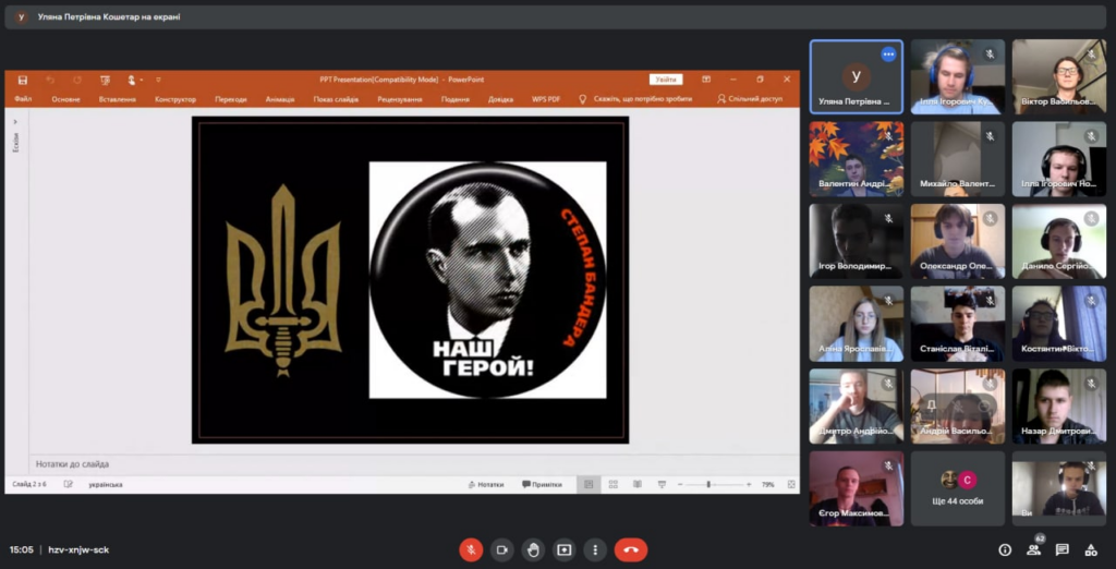 Студентам було запропоновано для обговорення агітаційну листівку УПА, у якій окреслено методи і мету боротьби українських повстанців. Студенти дійшли висновку, що вона в черговий раз спростовує міфи і підтверджує: мета повстанського руху – це вільна Україна. Без Сталіна і Гітлера. З нащадками Сталіна боремося сьогодні. Обов’язково переможемо!