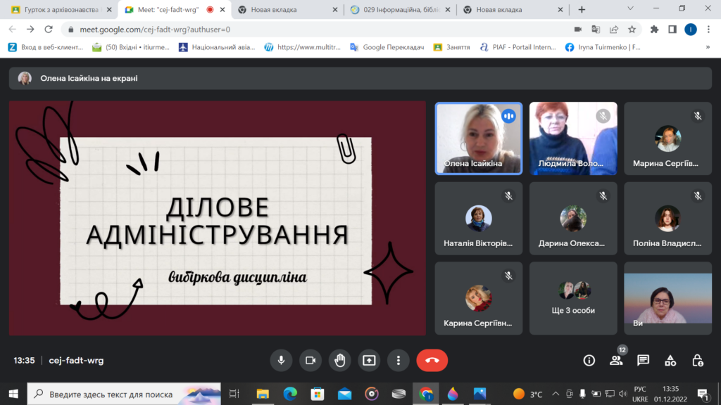 01 рудня 2022 року гаранти освітніх програм, викладачі кафедри історії та документознавства на чолі із завідувачем кафедри І.І. Тюрменко провели ряд зустрічей із здобувачами вищої освіти ОС «Бакалавр» освітніх програм «Документознавство та інформаційна діяльність» (ДК 121, ДК 221, ДК 321), «Інформаційна Читати далі