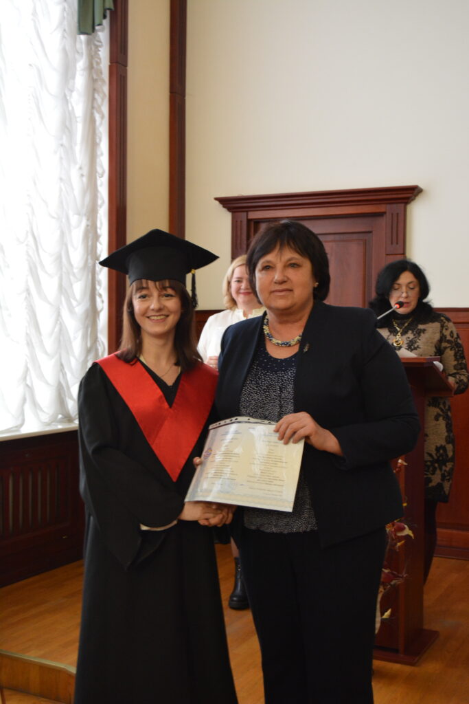 Вручення дипломів супроводжувалося теплими напутніми словами завідувачів випускових кафедр та наставників. Випускники також привітали один одного та зі щирими словами подяки звернулися до рідних кафедр та наставників. І звичайно, не обійшлося без виступів наших талановитих зірок – Юлії Ярошенко подарувала випускникам чудову пісню.