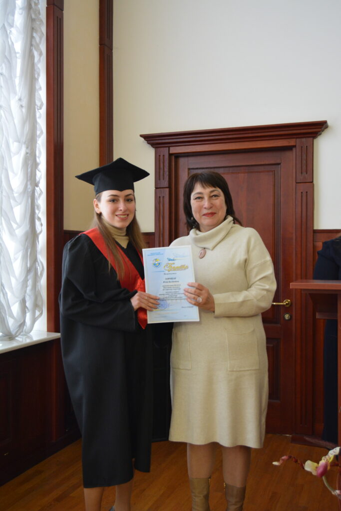 До вітань доєдналися й заступники декана Олександра Алпатова, Анжеліка Кокарєва, Леся Хоменко-Семенова, які вручили випускникам дипломи та грамоти за найкращі дипломні проекти.