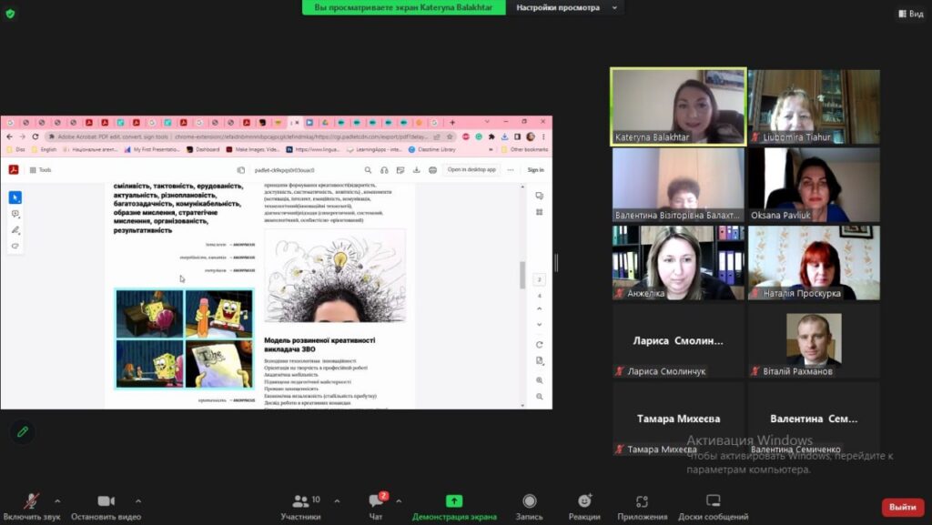 На вебінарі  також обговорили важливі питання, створили ідеальну модель креативного викладача 22 століття та опановували навички користування онлайн платформою Padlet