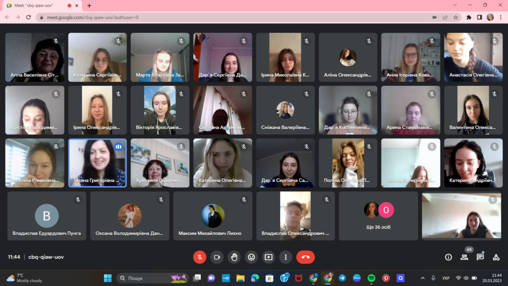 Зустріч пройшла у формі інтерактивного діалогу, під час якого студенти ставили запитання та ділилися своїми думками у чаті. Інтерес до майбутньої професії виявився у тому, що студенти цікавилися, як поводити себе у реальній ситуації під час перекладу, коли перекладач не може пригадати слово, щось не зрозумів, не почув. Пані Кристина фахово і вичерпно відповіла на всі запитання, наводячи приклади, аналізуючи конкретні ситуації зі своєї перекладацької практики. Такі зустрічі стають поштовхом до подальшого вдосконалення себе як фахівця та стимулом до саморозвитку.