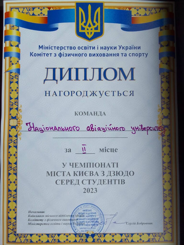 За загальними показниками виступу збірна команда НАУ посіла ІІ загальнокомандне місце. Наші студенти – спортсмени, Лущік Антон та Ізмайлов Кирило, за результатами своїх схваток, пройшли відбір і будуть представляти Національний Авіаційний Університет у складі збірної м. Києва на Універсіаді України з дзюдо.