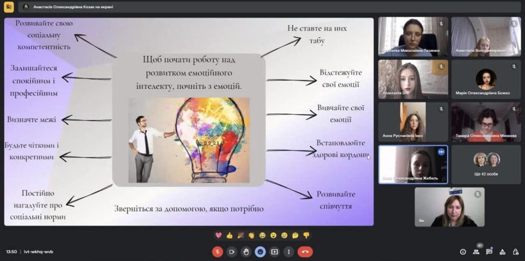 24 березня здобувачі вищої освіти Спеціальності 053 «Психологія» ОПП «Практична психологія», групи ПП-127 групи провели вебінар «Емоційний інтелект – складова успішної і здорової людини».