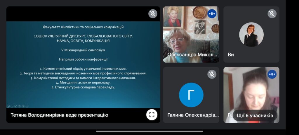 30 березня 2023 р. в рамках V Міжнародного симпозіуму «Соціокультурний дискурс глобалізованого світу: наука, освіта, комунікація» відбулася ІV Міжнародна науково-практична конференція «Лінгвістичні та методологічні аспекти викладання іноземних мов професійного спрямування», що була організована кафедрою іноземних мов за фахом Факультету лінгвістики та соціальних комунікацій НАУ. Співорганізаторами конференції є 4 зарубіжних вищих науково-освітніх заклади Сполучених Штатів Америки, Німеччини, Бельгії та Азербайджану.