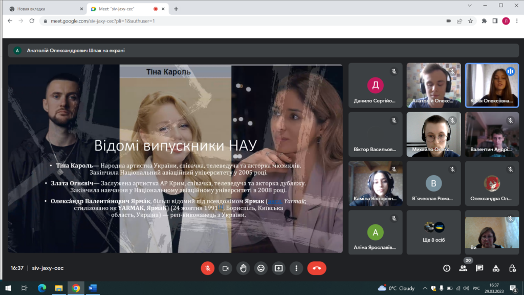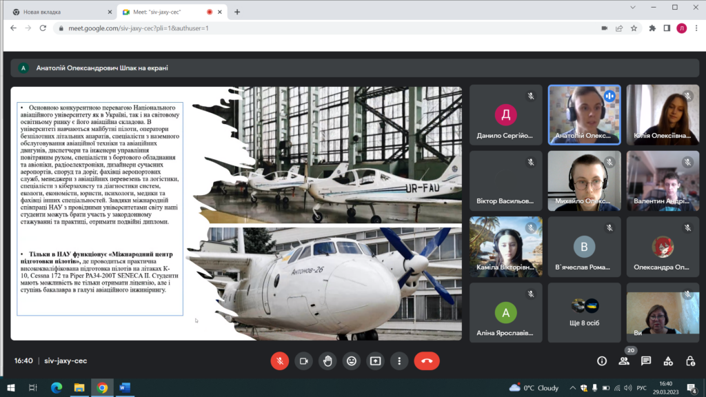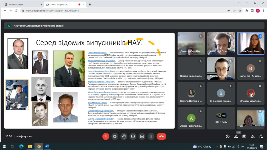 29 березня 2023 року на кафедрі іноземних мов за фахом Факультету лінгвістики та соціальних комунікацій Національного авіаційного університету відбулася бесіда-диспут до 90-річчя заснування НАУ. Студенти 121 групи Факультету кібербезпеки та програмної інженерії обговорили історичний шлях й основні здобутки університету, факультету та випускової кафедри інженерії програмного забезпечення. У ході бесіди доповідачі відзначили високий рейтинг та почесне місце НАУ як в Україні, так і на світовому освітньому ринку завдяки потужним науковим школам та багаторічному досвіду підготовки в галузях авіації, механіки, електроніки, електротехніки, матеріалознавства, інформатики й обчислювальної техніки, управління та багатьох інших галузях.