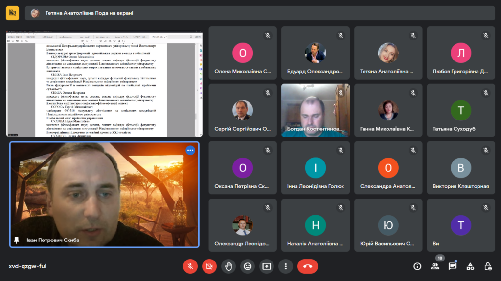 12 квітня 2023 року кафедра філософії за підтримки адміністрації ФЛСК НАУ та стейкхолдерів у режимі відеоконференції провела Всеукраїнський «круглий стіл» на тему: «Соціальні проєкти в контексті пошуку відповіді на глобальні виклики».