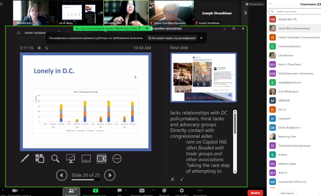 З 10 по 12 квітня 2023 року викладачі кафедри історії та документознавства ФЛСК в режимі офлайн-онлайн взяли участь у міжнародній конференції “SlavicConnection” у Сполучених Штатах Америки, яка проводилася на базі Техаського університету в Остіні. З вітальним словом до учасників конференції звернулися Посол України у Сполучених Штатах Америки пані Оксана Маркарова та Голова Східноєвропейського бюро “Голос Америки” пані Мирослава Гонгадзе. Основна увага конференції була зосереджена на хаосі самої інформації та на тому, як вона перешкоджає створенню, виконанню та комунікації політики та ефективному проведенню дипломатії. Науковці, політики та медіа-практики зібралися, щоб розглянути ключові проблеми нашого медіа-середовища такі як: фейкові новини, дезінформацію, соціальні медіа, кібервійну та штучний інтелект.
