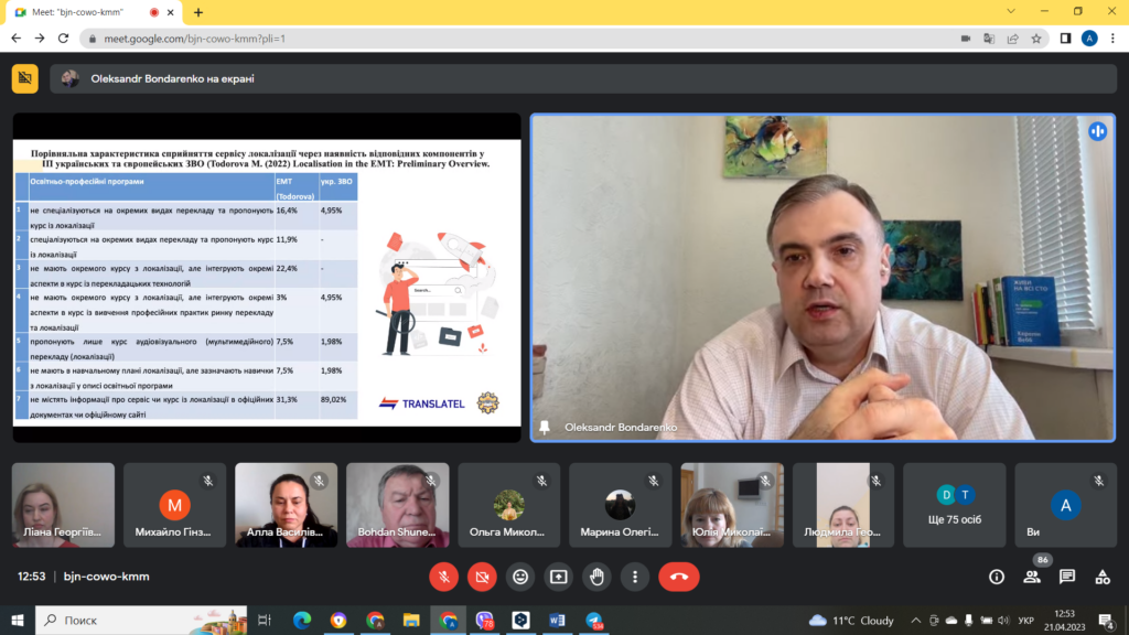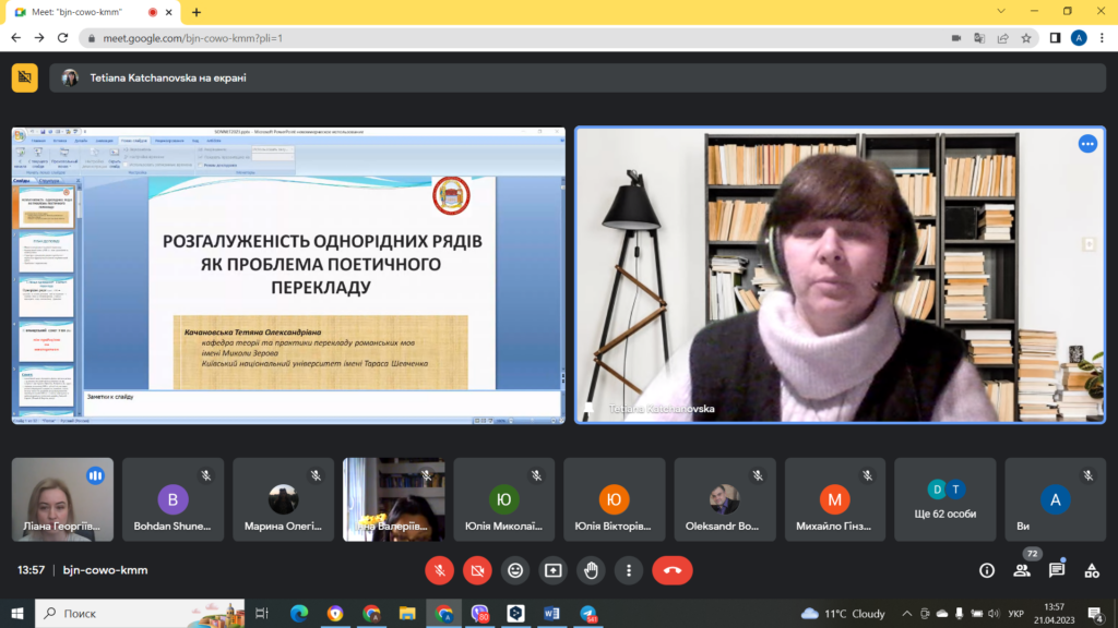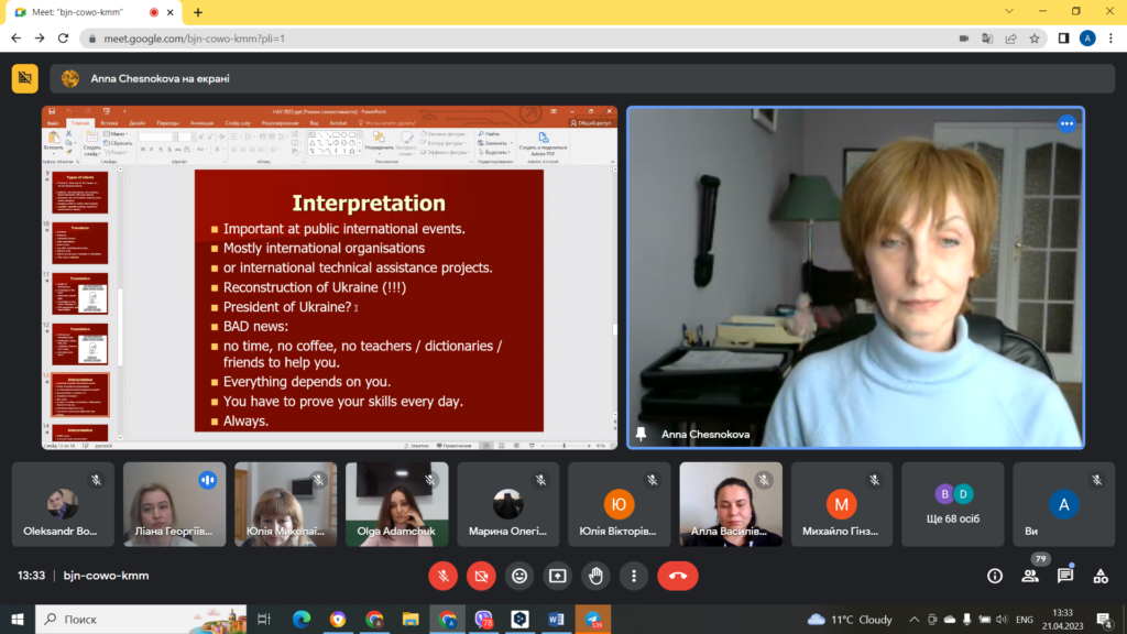 Зазначимо, що спеціальність «Філологія» є лідером серед гуманітарних спеціальностей нашого університету за обсягами набору студентів та якістю підготовки фахівців. Підготовка філолога-перекладача в технічному університеті, до того ж, зорієнтованого в першу чергу на авіаційну галузь, має свою специфіку. Саме ця специфіка стала 15 років тому поштовхом для започаткування науково-практичної конференції з питань теорії та практики перекладу, яка була задумана як спеціалізована платформа для обміну досвідом та визначення пріоритетів досліджень. Проте вперше конференція повноцінно проведена під час війни, але це не применшує значущість результатів наукових досліджень. Віртуальний простір надав змогу побачити та почути учасників, яким важко зібратись разом в одному місці в один час, такий тривожний та неспокійний час. Грузія, Польща, Україна, Бразилія, Канада – ці сузір’я локацій опинилось в Національному авіаційному університеті. Доктори наук і студенти, дослідники, викладачі та перекладачі-практики – дуже важливо було звести їх разом, дати почути один одного, зрозуміти, що потрібно будувати і зміцнювати містки між академією та перекладацькою індустрією, разом працювати над підготовкою майбутніх фахівців. Різноманітна тематика доповідей відтворила багатовимірність проблематики перекладу як феномену людської комунікації – від загальнотеоретичних питань до конкретних мовних аспектів, від методики викладання до сучасних технологій перекладу. Вже є перші відгуки, позитивні оцінки, тому впевнені, що спілкування було цікавим і приємним, що ми збагатились корисною інформацією та досвідом, що одержали поштовх для нових ідей та досліджень.