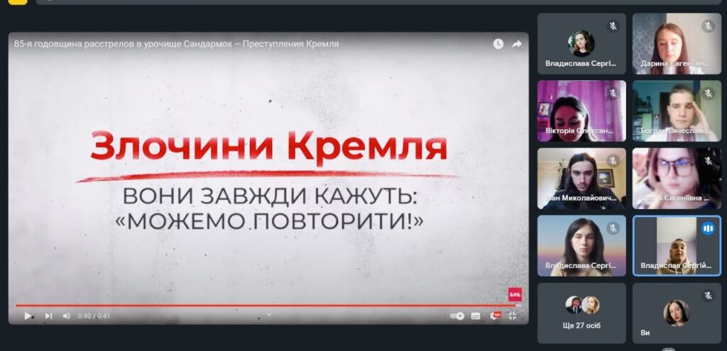 Модератор заходу студентка Ніна Дашевська, повідомила, що виявити усі місця поховань жертв політичних репресій на території України вкрай важко, як правило, слідів «власної роботи» працівники НКВС/КДБ не залишали. Спікери Владислава Пасічник, Ольга Капленко, Дар’я Дівісенко, Владислав Бортник, Дарина Ситюк, Вікторія Волинець, Богдан Наулко, Марія Гулівець, Іван Михайленко у своїх виступах акцентували на приховуванні та перекручуванні правди в радянські часи, історії виявлення поховань, проведенню перших розкопок, створенню музеїв та меморіалів уже за незалежності України у таких місцях: Биківня, Рутченкове поле, Католицьке кладовище (Умань), тюрма на Лонцького (Львів), П’ятихатки. Вражаючими були висновки кожного спікера про те, що зараз ці місця поховань не лише про минуле, а й про теперішнє – методи, підходи росіян до знищення українців принципово не змінилися з ХХ століття і сьогодні росія застосовує ті самі криваві сталінські практики на окупованих українських територіях. Студенти переконані, що найголовніше, щоби сучасні кати були притягнуті до відповідальності і засуджені як воєнні злочинці.