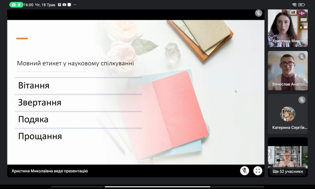 Студенти дізналися, яким повинен бути науковий текст, який читається і сприймається аудиторією, яких рекомендацій дотримуватися під час наукового письма. Учасники тренінгу вчилися обирати мовні формули в стандартних етикетних ситуаціях у науковому стилі, уникати помилок під час написання наукових текстів і представлення доповідей як результатів наукового дослідження.