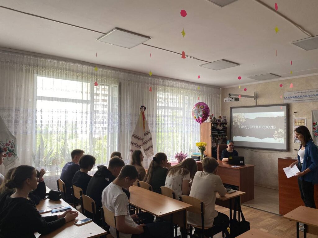24 травня 2023 року в рамках проведення профорієнтаційної роботи відбулася зустріч студентів 2 курсу Факультету лінгвістики та соціальних комунікацій Наталії Шапенко та Валерії Богачової, здобувачок вищої освіти ОПП Практична психологія з учнями старших класів школи І-ІІІ ступенів №308 Деснянського району м. Києва