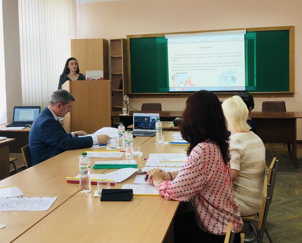 20 червня 2023 р. на кафедрі історії та документознавства відбувся захист кваліфікаційних робіт здобувачів вищої освіти ОС «Бакалавр» спеціальності 029 «Інформаційна, бібліотечна та архівна справа» ОПП «Документознавство та інформаційна діяльність» денної форми навчання. Екзаменаційна комісія працювала у складі: голови комісії кандидата історичних наук, заступника Генерального директора з наукової роботи Національної бібліотеки України імені В. І. Вернадського Ковтанюка Юрія Славовича, заступниці голови комісії завідувачки кафедри історії та документознавства ФЛСК професорки Тюрменко Ірини Іванівни та членів комісії – завідувачки кафедри філософії ФЛСК, професорки Дротянко Л. Г., доцентки кафедри ІД Бем Н. В., доцентки кафедри філософії Сідоркіної О. М, секретаря комісії ст. викладачки кафедри ІД Ількової О. Г. Комісія заслухала результати наукових досліджень 11 здобувачів вищої освіти. Теми досліджень були актуальними, мали практичне значення і відповідали спеціальності. Молоді дослідники гідно представили свої роботи. 5 робіт за результатам рішення екзаменаційної комісії було висунуто на конкурс кваліфікаційних робіт. Роботи здобувачів вищої освіти Копійки Поліни Олександрівни, Ракович Дарини Вадимівни та Шевченка Ігоря Вікторовича зайняли 1 місце, 2 місце посіли кваліфікаційні дослідження Мошківської Дарини Вадимівни та Бородай Марини Сергіївни. Усього екзаменаційна комісія 5 робіт оцінила на «відмінно», 3 роботи на отримали оцінку «добре» і 3 роботи було оцінено на «задовільно».
