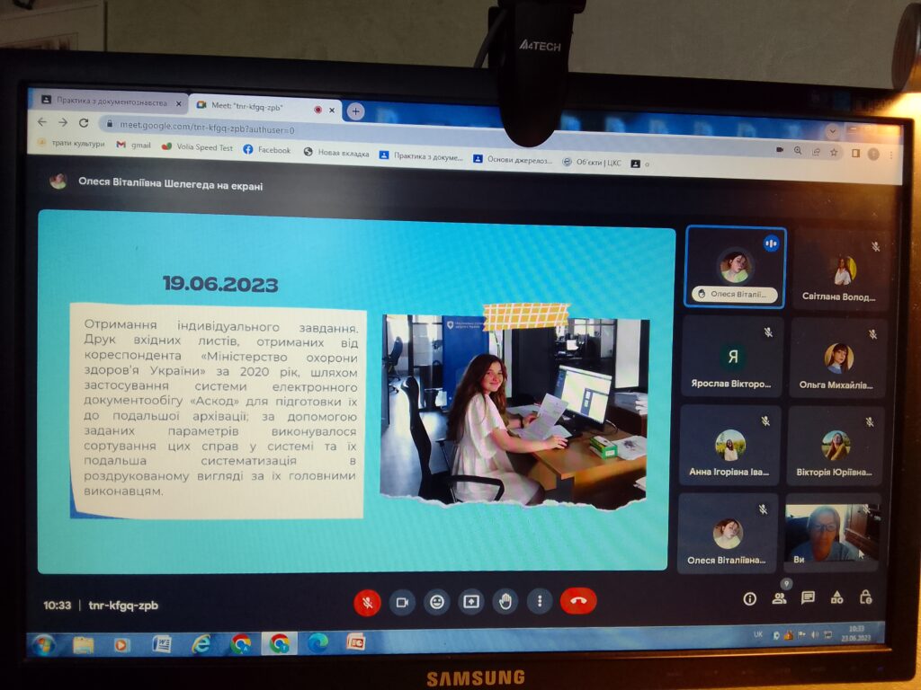 25 червня 2023 р.  на кафедрі історії та документознавства завершилась практика з документознавства здобувачів  вищої освіти 321 групи ОС «Бакалавр» спеціальності 029 «Інформаційна, бібліотечна та архівна справа», ОПП «Документознавство та інформаційна діяльність».  Практика проходили в змішаному режимі онлайн та офлайн  з 12 червня по 25 червня 2023 року.