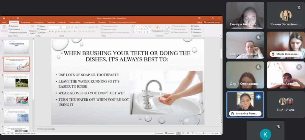 Під час виховного заходу вдалось донести до студентів думку про те, що бережне та раціональне використання водних ресурсів постає чи не найважливішим питанням сьогодення. Студенти систематизували і поглибили знання за темою: «Охорона і раціональне використання водних ресурсів». Магістрантка-практикантка наголосила на важливості формуванні відповідального відношення до охорони навколишнього середовища; вихованні зацікавленості до екології; моделюванні позитивного погляду і поведінки в природі.