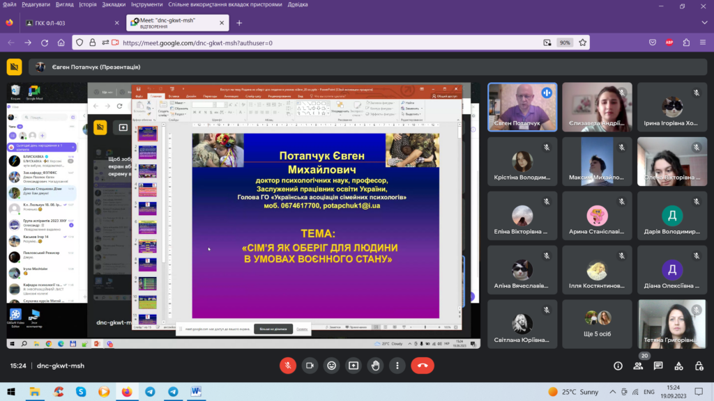 19 вересня 2023 року проведено виховний захід для студентів 4-го курсу (група 403), магістром 2-ого курсу, спеціальності «Філологія» Пузій Єлизаветою під керівництвом викладача-методиста, доцента кафедри англійської філології і перекладу Тетяни Семигінівської. Для проведення виховного заходу було запрошено сімейного психолога, завідувача Читати далі