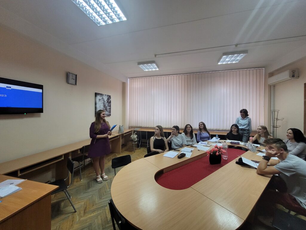 19 вересня 2023 року студентка-магістрантка 2-го року навчання спеціальності 035 Філологія Ярошенко Юлія провела під керівництвом доцента Шахновської Ірини Ігорівни виховний захід для студентів групи ФЛ-202 спеціальності «Філологів», присвячений молодіжній програмі Erasmus+. Під час заходу Юлія поділилася своїм особистим досвідом участі в програмі молодіжного обміну та відповіла на запитання учасників.