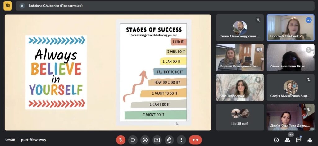 Анна Ткаченко є співробітницею міжнародної компанії Grammarly, яка працює на основі штучного інтелекту. Богдана Чубенко працює перекладачем міжнародної компанії PSI CRO, яка спеціалізується на проведенні клінічних досліджень. Модератори зустрічі – доценти кафедри англійської філології і перекладу Алла Сітко та Марина Пилипчук. Активними учасниками зустрічі стали члени гуртка «Проблеми і перспективи розвитку перекладу».