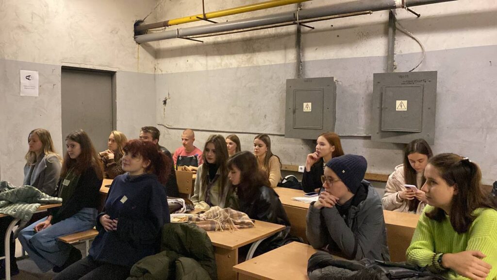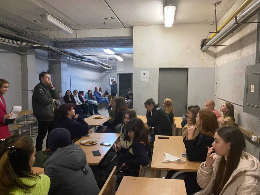 Навіть не зважаючи на повітряну тривогу, тренери продовжили роботу з групою в укритті.