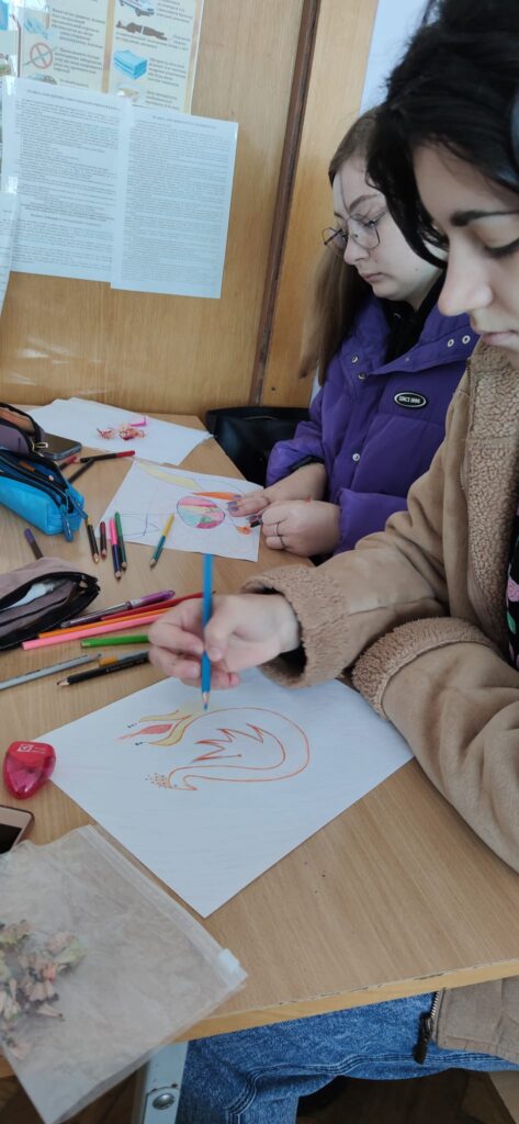 Арттерапія продовжує пошук нових ресурсних технік для адаптації, відновлення психіки людини в сучасних реаліях війни. Одним із важливих завдань, над вирішенням якого працюють учасники студентського наукового гуртка «Арт-клуб» разом з його керівником – старшим викладачем кафедри Педагогіки та психології професійної освіти Оленою Дацун є розробка та апробація нових арттерапевтичних технік для роботи з пораненими військовослужбовцями під час їх реабілітації в медичних закладах Києва.