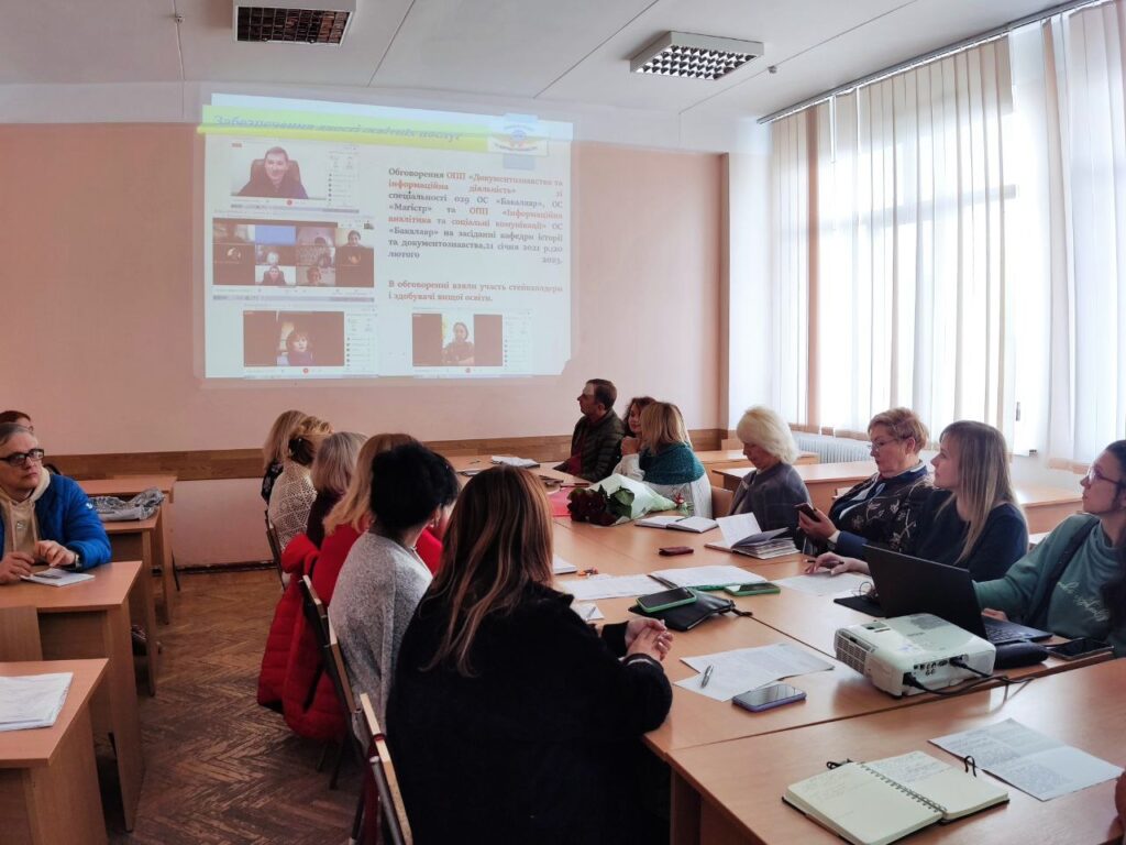 Головною темою порядку денного став звіт кафедри історії та документознавства за два роки діяльності (завідувач – Ірина Тюрменко). У змістовній презентації були представлені головні здобутки кафедри, навчально-методична та наукова робота, міжнародна діяльність та укладені міжнародні договори, головні проєкти кафедри, підвищення кваліфікації викладачів, студентська наука, академічна мобільність, робота зі стейкхолдерами та організація роботи зі здобувачами вищої освіти. Робота кафедри була визнана взірцевою, отримавши схвальні відгуки від декана та всіх членів вченої ради.