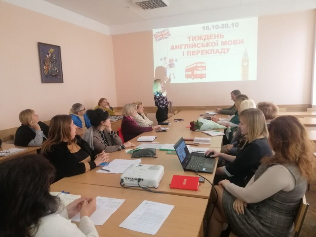 Окремим питанням заслухали звіт завідувача кафедри англійської філології та перекладу Ліани Буданової про низку заходів, організованих кафедрою в рамках проведення Тижня англійської мови з 16 по 20 жовтня. Варто відзначити такі заходи: створення відеореклами спеціальності «Переклад», конкурси письмового перекладу та пісенного перекладів, фонетичний конкурс, конкурс поетичного перекладу та цикл цікавих зустрічей «Стратегія успіху» з випускниками кафедри.