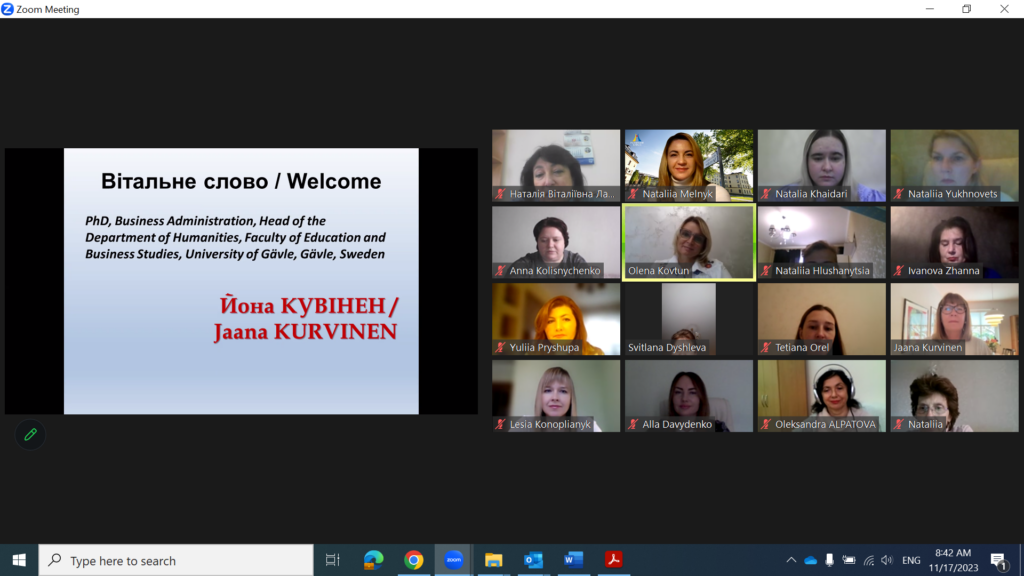 17 листопада 2023 року кафедра іноземних мов і перекладу факультету лінгвістики та соціальних комунікацій спільно з Уманським державним педагогічним університетом імені Павла Тичини, м. Умань, Університетом Євлє, (м. Євлє, Швеція), Загребським університетом (м. Загреб, Хорватія) та Науково-дослідним інститутом німецької мови (м. Вісбаден, Німеччина) організували і провели ХІ Міжнародну науково-практичну онлайн-конференцію «Подолання мовних і комунікативних бар’єрів: освіта, наука, культура».
