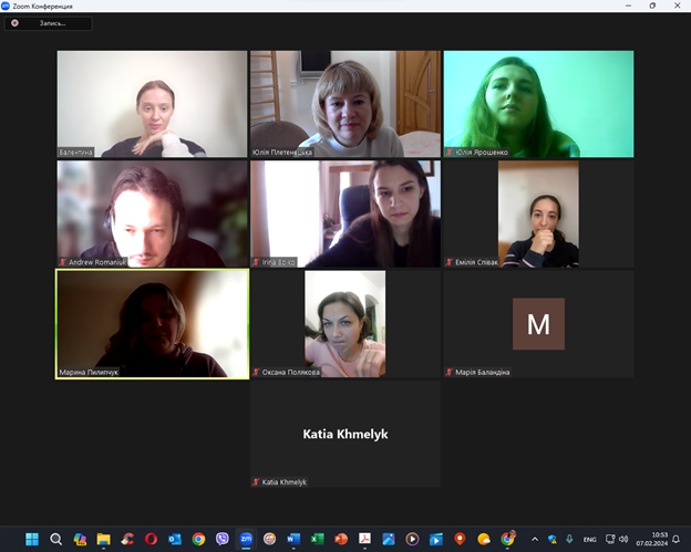 7-го лютого гарант освітньої програми «Германські мови та літератури (переклад включно), – перша англійська» другого магістерського рівня вищої освіти Юлія Плетенецька провела зустріч із випускниками програми різних років. Зустріч передусім присвячена питанням підготовки проєкту нової редакції освітньої програми магістерського рівня вищої освіти, а також необхідності відстеження кар’єрного шляху випускників програми.