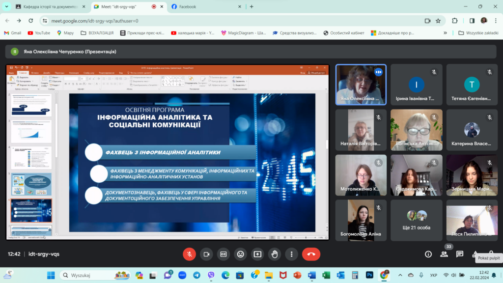 22 лютого відбулася панельна дискусія «ПЕРСПЕКТИВИ РОЗВИТКУ СПЕЦІАЛЬНОСТІ 029 ІНФОРМАЦІЙНА, БІБЛІОТЕЧНА ТА АРХІВНА СПРАВА» в рамках співпраці кафедри історії та документознавства Факультету лінгвістики та соціальних комунікацій НАУ і Фахового коледжу інженерії, управління та землевпорядкування НАУ. Завідувач кафедри історії та документознавства Читати далі