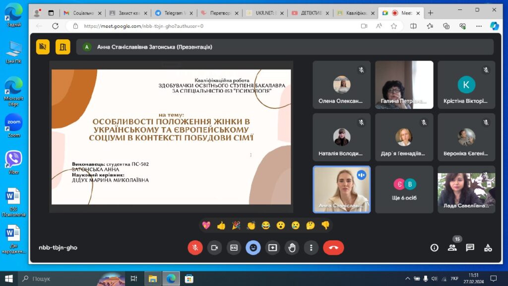 26-27 лютого 2024 року в режимі онлайн відбувся захист кваліфікаційних робіт бакалаврів заочної форми навчання спеціальності 053 «Психологія» ОП “Психологія”.