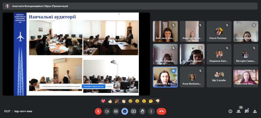 19-21 березня 2024 року доценти кафедри української мови та культури факультету лінгвістики та соціальних комунікацій Анастасія Сібрук і Христина Стецик провели цикл зустрічей зі студентами різних спеціальностей Фахового коледжу інженерії, управління та землевпорядкування НАУ. Організувала зустрічі з майбутніми випускниками викладач коледжу, канд. філол. наук Людмила Халіновська.