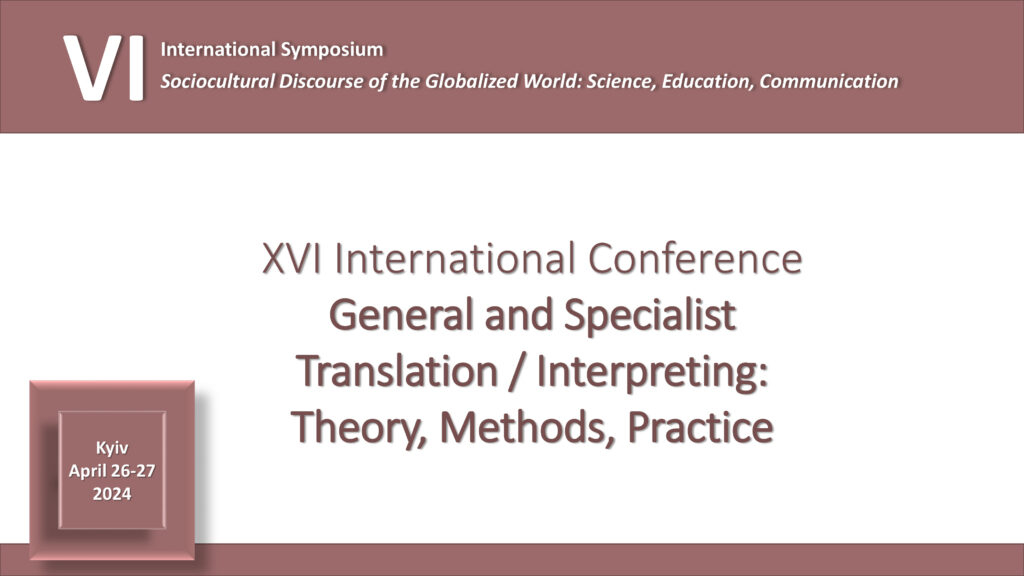 XVІ Міжнародна науково-практична конференція «Фаховий та художній переклад: теорія, методологія, практика»