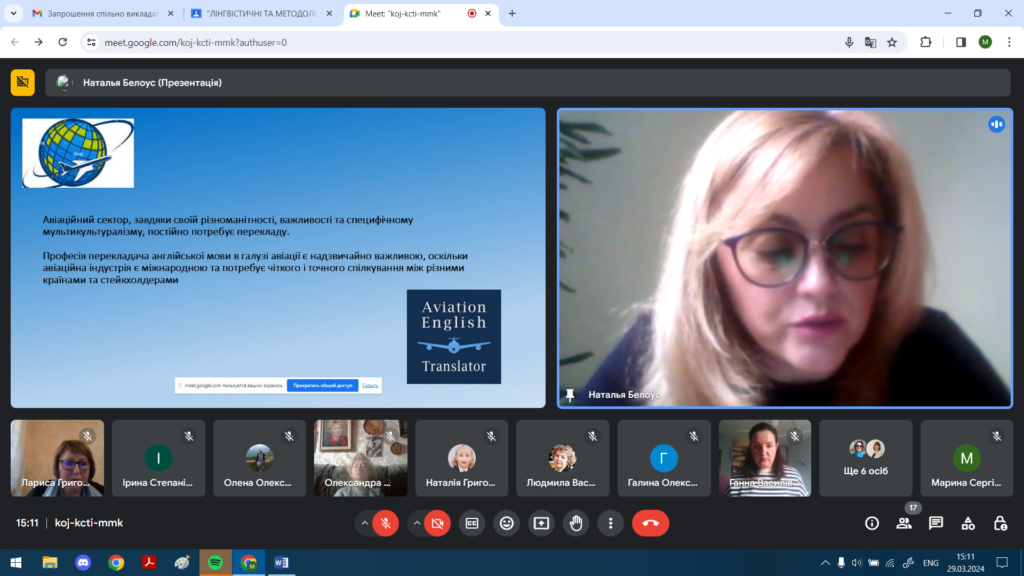 29 березня 2024 року в день Міжнародного дня філолога в межах VІ Міжнародного симпозіуму «Соціокультурний дискурс глобалізованого світу: наука, освіта, комунікація» відбулося засідання V Міжнародної науково-практичної конференції «Лінгвістичні та методологічні аспекти викладання іноземних мов професійного спрямування», зорганізованої кафедрою іноземних мов за фахом Факультету лінгвістики та соціальних комунікацій НАУ. У конференції взяли участь 76 науковців провідних вітчизняних і закордонних закладів вищої освіти Німеччини, Ізраїлю, Бельгії та Азербайджану. За результатами роботи конференції сформовано збірник тез доповідей, в якому представлено результати досліджень актуальних проблем сучасної лінгвістики, перекладознавства й методики викладання іноземних мов у закладах вищої освіти.