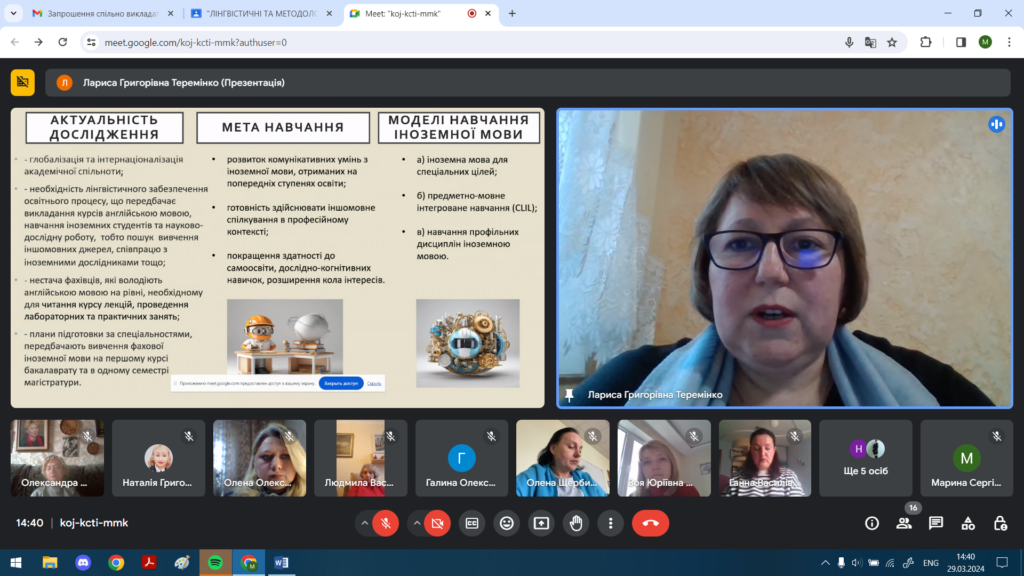 Щире зацікавлення й жваве обговорення викликали доповіді доцента кафедри іноземних мов Воєнної академії імені Євгенія Березняка, кандидата педагогічних наук, доцента Щербини О.О., науково-педагогічних працівників кафедри іноземних мов за фахом: доценток Олени Гурської, Наталії Білоу, Лариси Теремінко, старших викладачок Ірини Козелецької, Ганни Сорокун, Тетяни Шульги та викладачки Ганни Дишлевої.