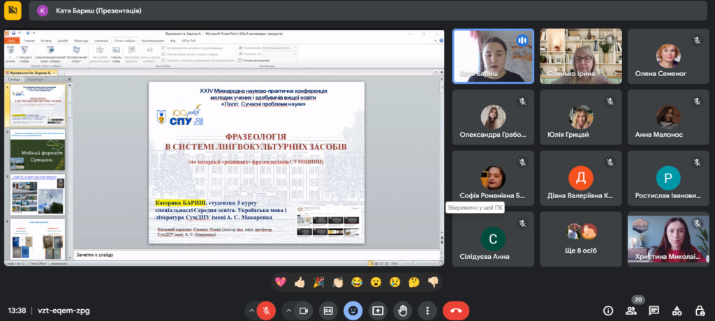 Студенти, молоді науковці презентували наукові дослідження, присвячені актуальним питанням розвитку і функціонуванню української мови і культури сьогодні. Було виголошено доповіді, тематика яких визначена реаліями нашого часу – про концепцію українізації на початку ХХІ століття, роль української мови в становленні національної ідентичності, фразеологію в системі лінгвокультурних засобів, позивні українських військових (особливості творення), мову як чинник національно-етнічного самовираження та ін. Глибокі аналітичні запитання, цікаві наукові дискусії, гостропроблемні теми для наукового обговорення засвідчили високий науковий потенціал нашої молоді – майбутньої інтелектуальної еліти нації.
