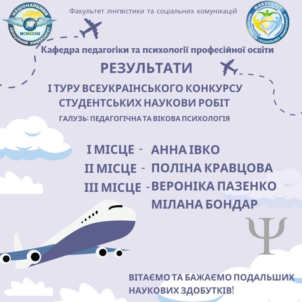 Конкурс студентських наукових робіт галузі знань «Падагогічна та вікова психологія»
