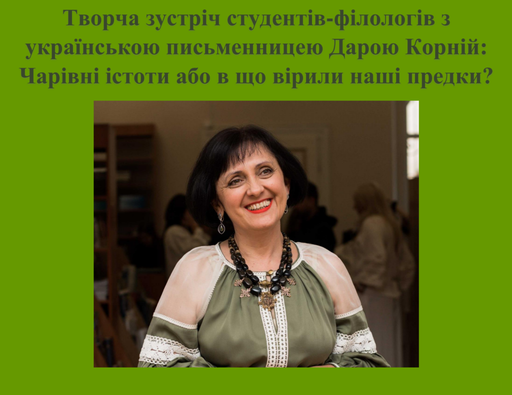 19 квітня 2024 року на кафедрі англійської філології і перекладу факультету лінгвістики та соціальних комунікацій пройшла творча зустріч із відомою українською письменницею Дарою Корній, яку організувала старша викладачка кафедри Анна Щербина. Дара Корній – українська сучасна письменниця, журналістка, волонтерка, яка Читати далі
