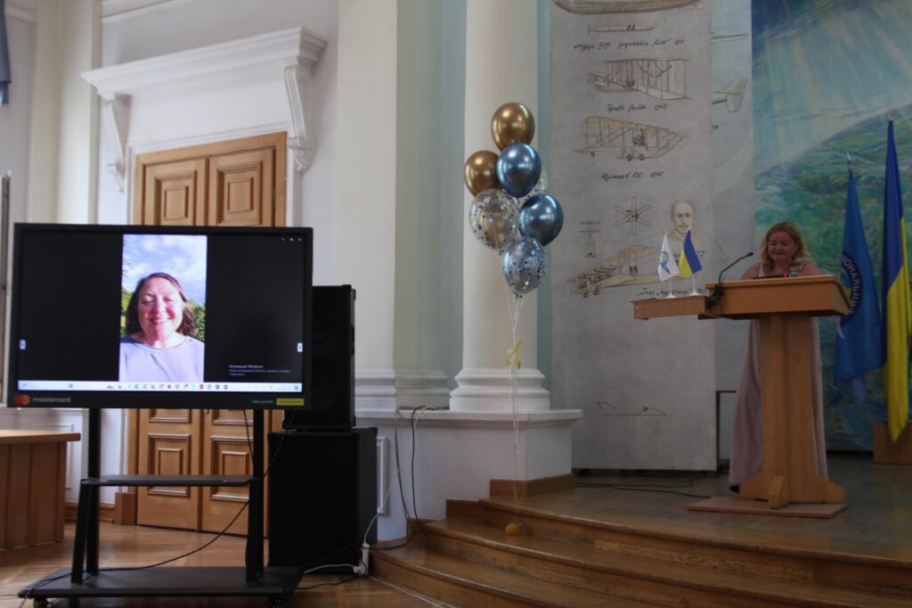 З вітальним словом до випускників звернувся голова наглядової ради НАУ Петро Чернишов, який побажав випускникам та усім співробітникам факультету професійних успіхів, щасливого і успішного життя! З вітальним словом до гостей та випускників звернулася в.о.декана факультету Наталія Мельник, наголосивши на високому запиті у високваліфікованих фахівцях, побажала натхнення, віри, перемоги та, доповнюючи свій виступ словами Ліни Костенко – «і кожний фініш – це, по суті, – старт», Наталія Іванівна сказала, що все тільки починається, головне – мати віру і мрію!
