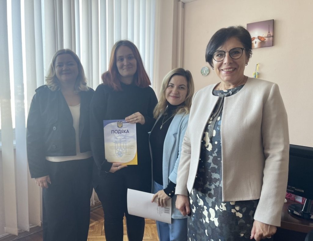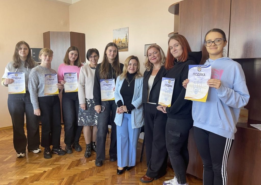 08 жовтня в.о. декана ФЛСК, доктор педагогічних наук Наталія Мельник зустрілася із студентами спеціальності 029 «Інформаційна, бібліотечна та архівна справа» ОП «Документознавство та інформаційна діяльність» з нагоди вручення подяк здобувачкам спеціальності Софії Амелькіній, Вікторії Войчук, Маргариті Рибіцькій, Анастасії Сенченко, Вікторії Федько, Валерії Харченко, Олександрі Шинкаренко та Єві Шиловій за теоретичну підготовку, практичні вміння та навички, які вони виявили при виконанні виробничих завдань під час проходження фахово-ознайомлювальної практики в Центральному державному архіві вищих органів влади та управління України.