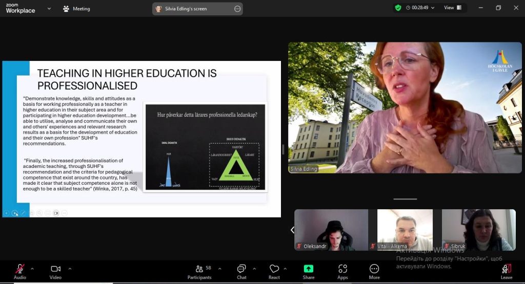 Темою лекції була: « Особливості професійної підготовки педагогічних кадрів для закладів вищої освіти в Швеції. Перспективи впровадження досвіду в Україні».