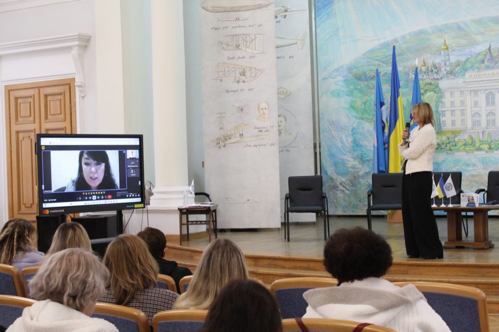 З вітальним словом до учасників конференції звернулася в.о. ректора Ксенія Семенова, яка привітала усіх учасників та гостей, окреслила перспективи розвитку Національного авіаційного університету та вказала про важливість даної конференції у розрізі сучасних освітніх реформ.