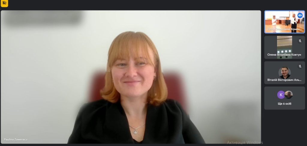 Пауліна Заверач – керівниця проєкту EU GREEN у Природничому університеті м. Вроцлав, менеджерка проєкту та секретарка Сенату EU GREEN у своєму виступі розповіла про особливості діяльності EU GREEN у Природничому університеті м. Вроцлава;