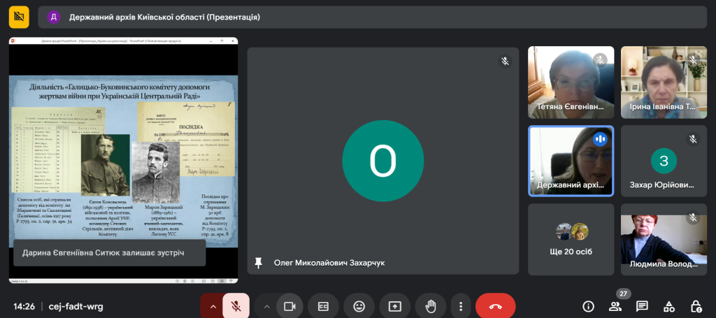 Цікава лекція-презентація наших стейкхолдерів викликала схвальні відгуки і безліч питань до її авторки. Пані Олександра поділилась своїм досвідом пошуку архівних документів, відповіла на питання. Всі учасники зустрічі подякували керівництву ДАКО, зокрема його очільниці Соф’ї Каменєвій, за сприяння роботі гуртка і висловили надію на майбутню співпрацю.
