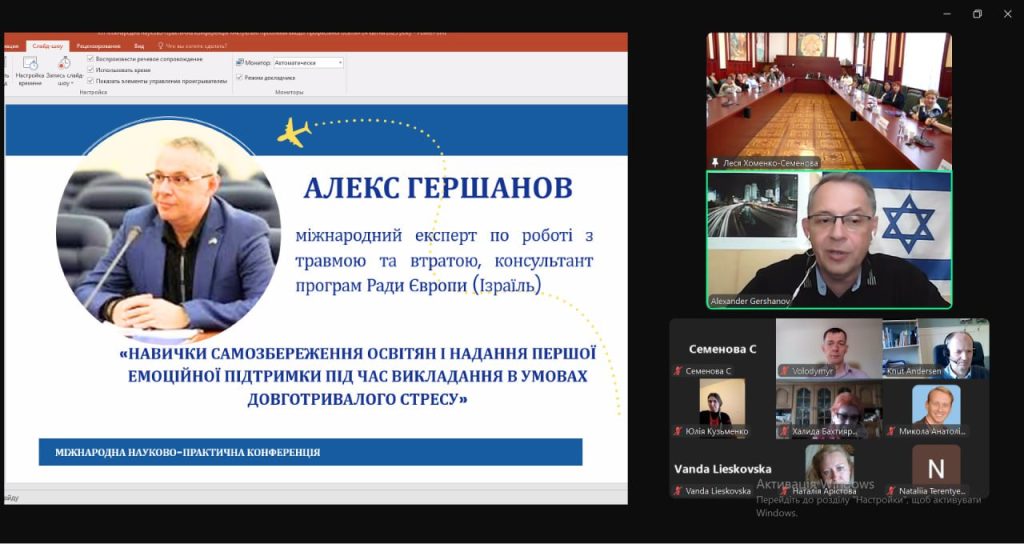 Алекс Гершанов (Ізраїль), міжнародний експерт із травми та втрати, консультант Ради Європи, виступив із темою «Навички самозбереження освітян і надання першої емоційної підтримки в умовах довготривалого стресу», поділився практичними стратегіями збереження психічної стабільності викладачів у часи війни й соціальної турбулентності.