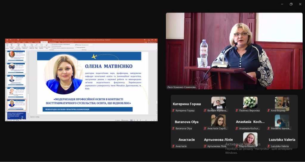 Модераторкою конференції виступила Ірина Варава, докторка філософії, доцентка кафедри педагогіки та психології професійної освіти факультету психології, комунікацій та перекладу Державного університету «Київський авіаційний інститут».