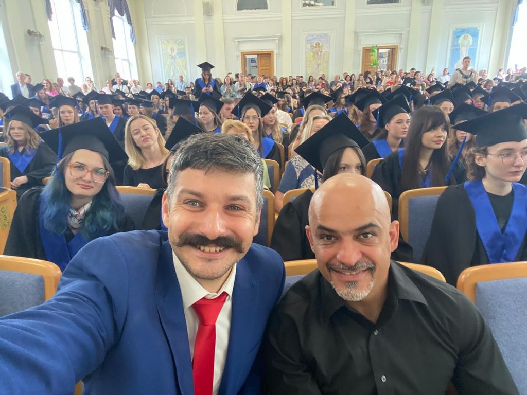 Особливою подією свята стала присутність почесного гостя – відомого українського журналіста, політичного діяча Мустафи Наєма. Його виступ став справжнім джерелом натхнення для випускників. Пан Мустафа поділився щирою та глибоко особистою історією свого професійного шляху, говорив про виклики та перемоги, що формували його як людину та громадянина. Зі сцени лунали слова вдячності та підтримки молодому поколінню. Пан Наєм щиро ділився своїми емоціями щодо війни, говорив про біль, але водночас, про віру в перемогу і світле майбутнє України. Він подякував випускникам за те, що залишаються вдома, що своєю працею і знаннями щодня наближають нашу країну до успіху та відновлення.