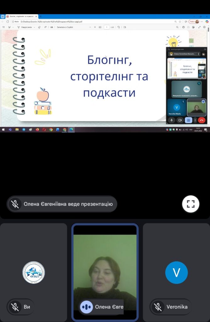 • «Блогінг, сторітелінг та подкасти» – повний цикл створення контенту: від специфіки розробки сценарію до практичної реалізації в соцмережах. Учасники дізналися, як створювати історії, що чіпляють.
