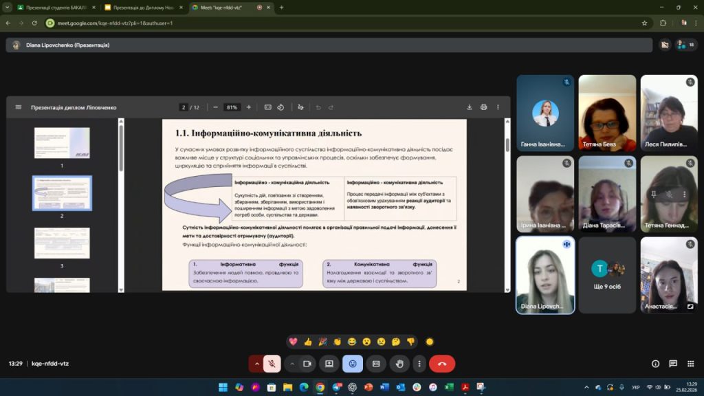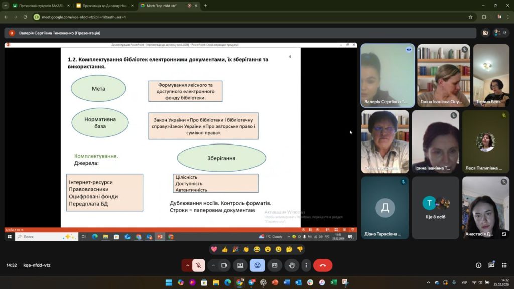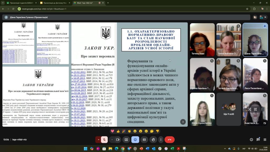 25 лютого 2026 року на кафедрі української мови, історії та інформаційної діяльності відбувся захист бакалаврських кваліфікаційних робіт зі спеціальності 029 «Інформаційна, бібліотечна та архівна справа».