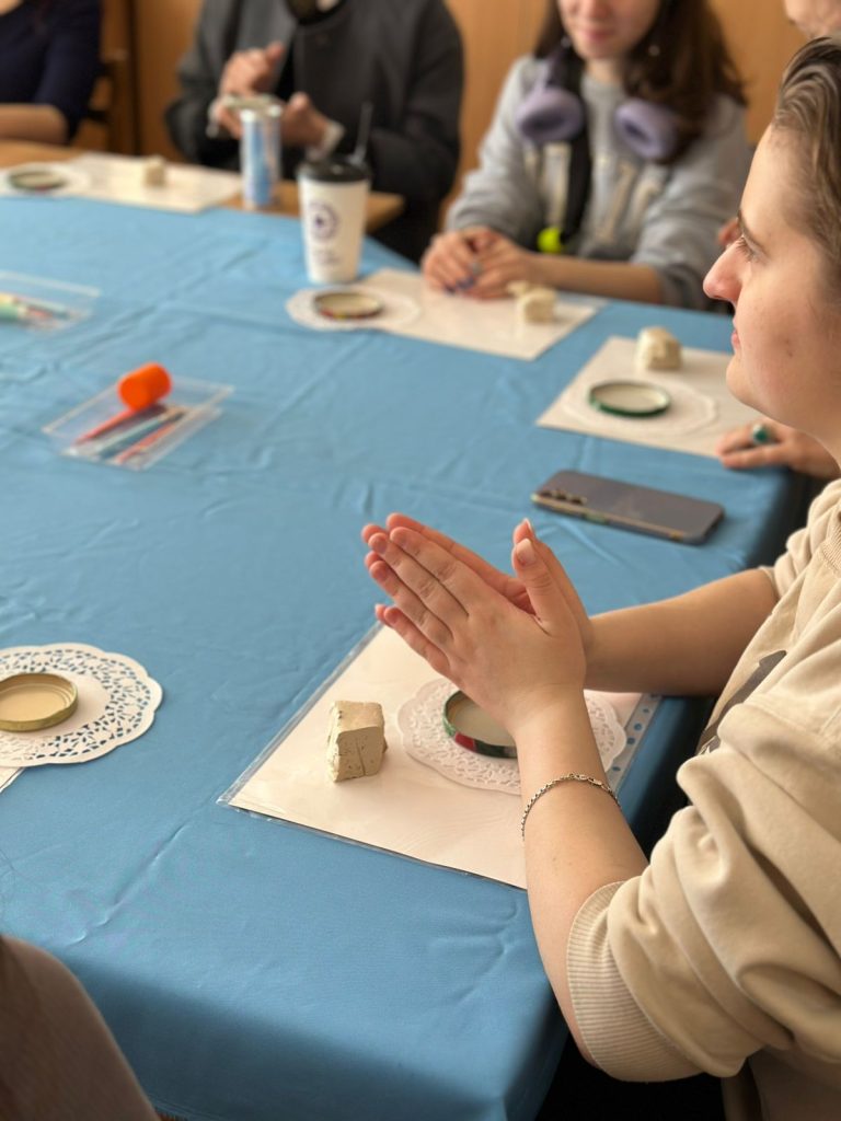 Під час майстер-класу студенти працювали з сучасними матеріалами, які після застигання набувають міцності, подібної до кераміки. Завдяки різноманітним інструментам і декоративним елементам кожен створив унікальний дизайн: від мінімалістичних форм до оригінальних текстур і символічних образів.